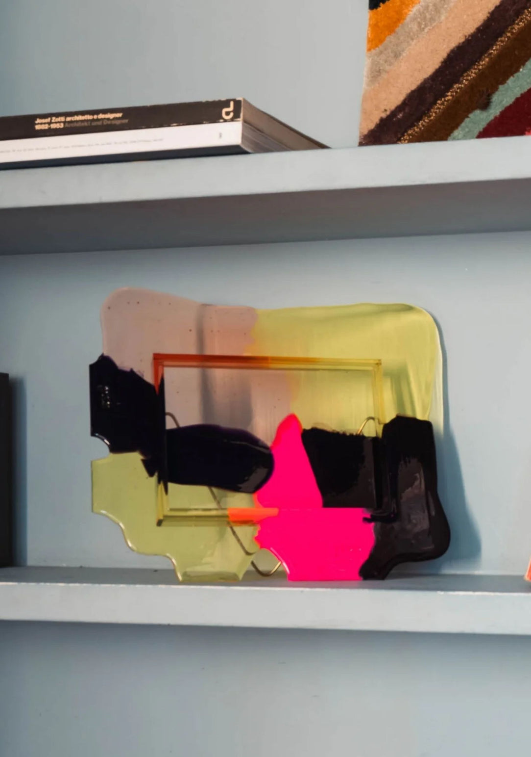 Bold, playful, and instantly recognizable, these resin photo frames by Gaetano Pesce transform everyday memories into works of art. Each frame is hand-poured in vibrant, fluid color combinations, no two are ever alike, making them as unique as the photos they hold. With their organic shapes and glossy finish, they capture Pesce’s signature approach: blurring the line between design and sculpture.