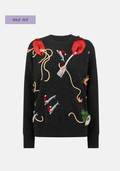 This slouchy crewneck features sequined lobster claws tucking into sardines and spaghetti - because who says dinner can't be wearable? Soft, relaxed, and full of personality, it's wearable art that turns cosy layering into a conversation-starting statement.
