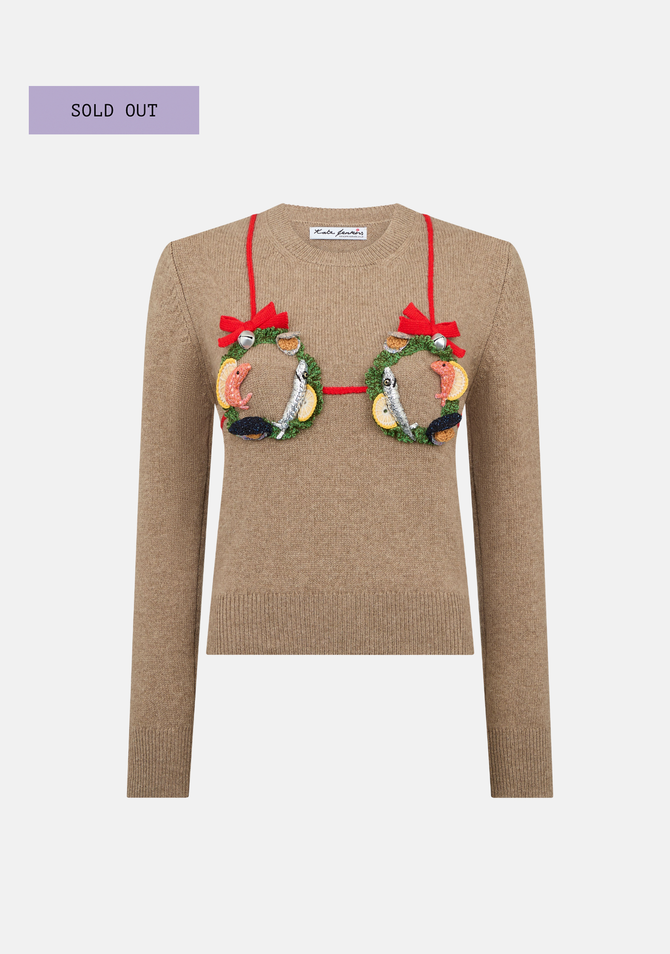 This season, KOIBIRD makes a splash with British textile artist Kate Jenkins, unveiling MERRY FISHMAS — an exclusive capsule that marries high craftsmanship with irreverent holiday cheer. Celebrated for her clever, food-inspired knitwear, Jenkins turns her signature whimsy toward the ocean’s depths, creating eight collectible jumpers adorned with hand-worked knit, crochet, and sequin seafood details. Each piece shimmers with personality — a playful convergence of art, humour, and haute knitwear designed to make spirits (and sequins) bright.