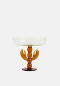 Make a statement at the table with this playful yet elegant Lobster Platter. Resting atop a sculptural amber lobster base, the clear glass dish offers the perfect stage for serving fruits, seafood, or hors d’oeuvres.