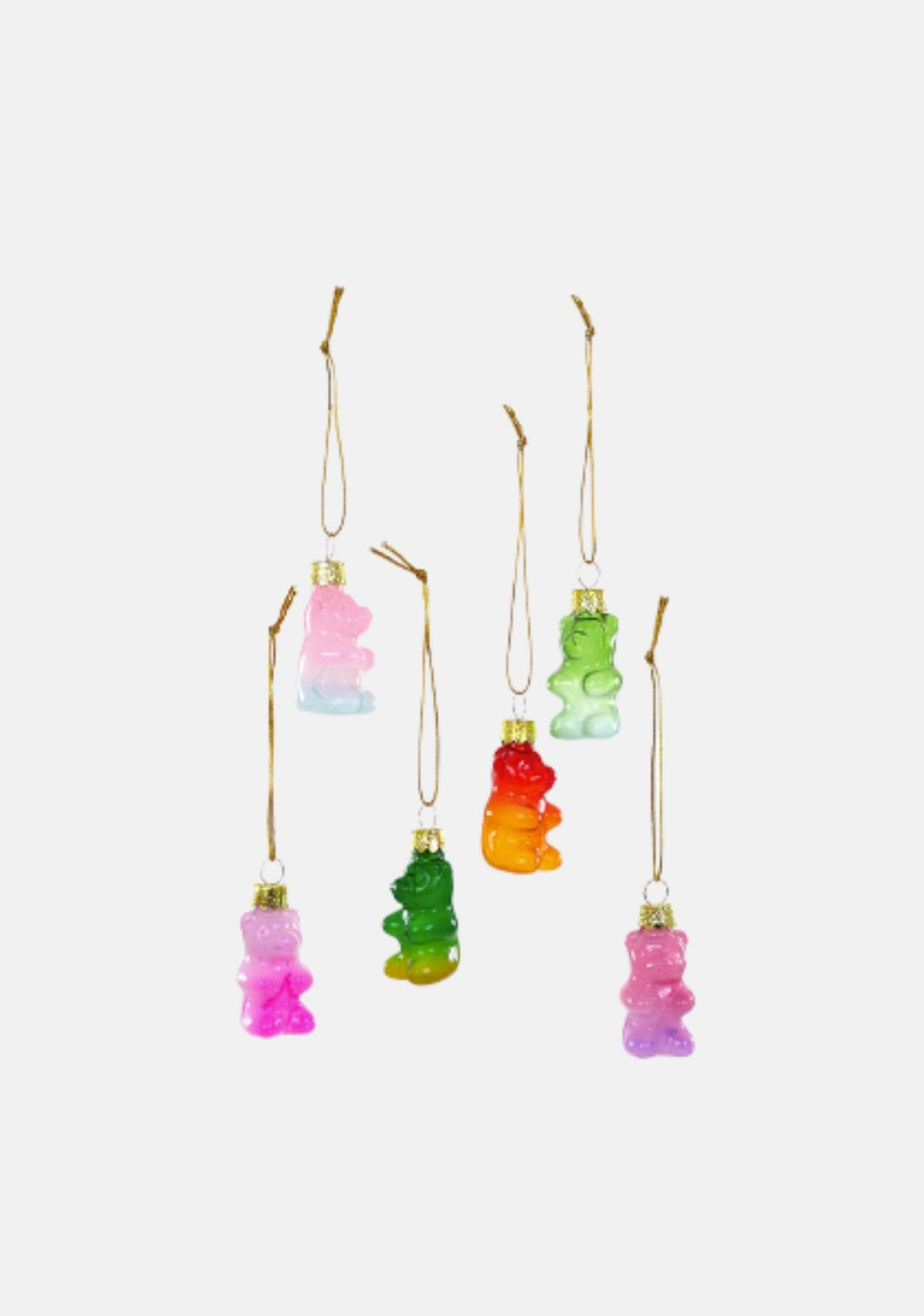 Sweeten up your tree with this playful set of six gummy bear ornaments in juicy colours. Bright, nostalgic, and delightfully kitsch, they’re impossible not to love.