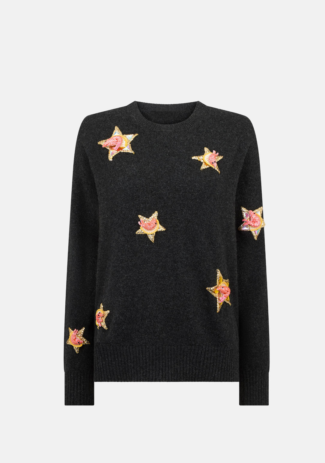 This charcoal sweater is sprinkled with hand-crocheted prawn stars—unexpected, textural details that bring a fun twist to everyday layering. Crafted from super-soft Geelong Lambswool with a gentle slouchy silhouette, it’s the perfect piece for adding personality to your winter wardrobe.