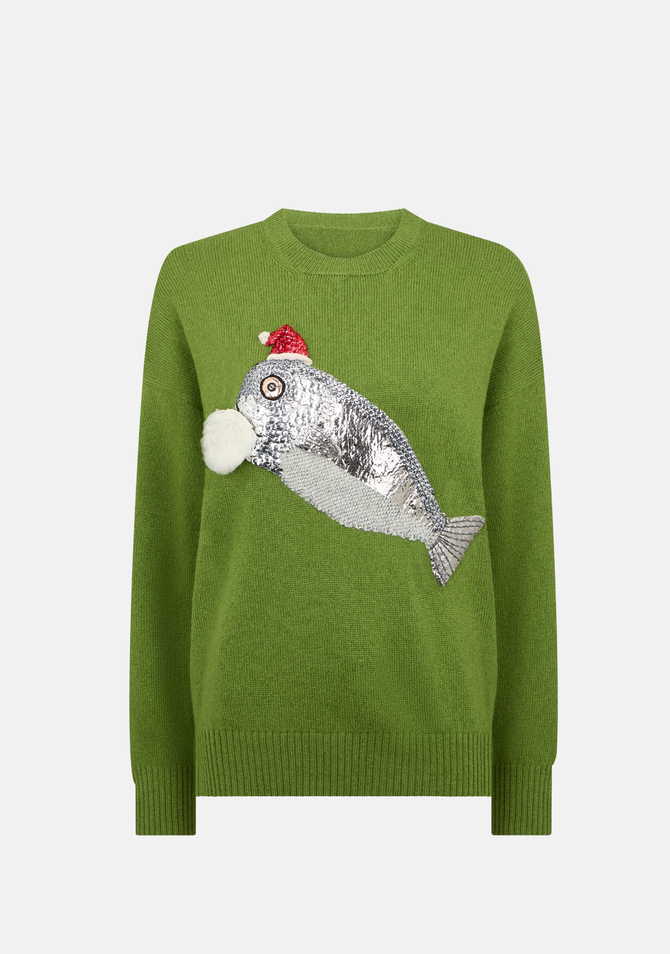 This season, KOIBIRD makes a splash with British textile artist Kate Jenkins, unveiling MERRY FISHMAS — an exclusive capsule that marries high craftsmanship with irreverent holiday cheer. Celebrated for her clever, food-inspired knitwear, Jenkins turns her signature whimsy toward the ocean’s depths, creating eight collectible jumpers adorned with hand-worked knit, crochet, and sequin seafood details. Each piece shimmers with personality — a playful convergence of art, humour, and haute knitwear designed to make spirits (and sequins) bright.