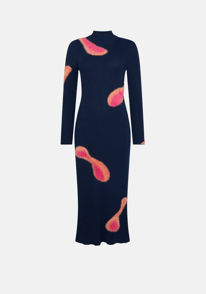 A timeless style with a futuristic touch, PH5's Simba Long Sleeved Maxi Dress is knitted from a conscious blend of eco-friendly yarns. The column silhouette is a classic shape that you can rely on season after season and the bright intarsia pattern makes it a stand-out staple.