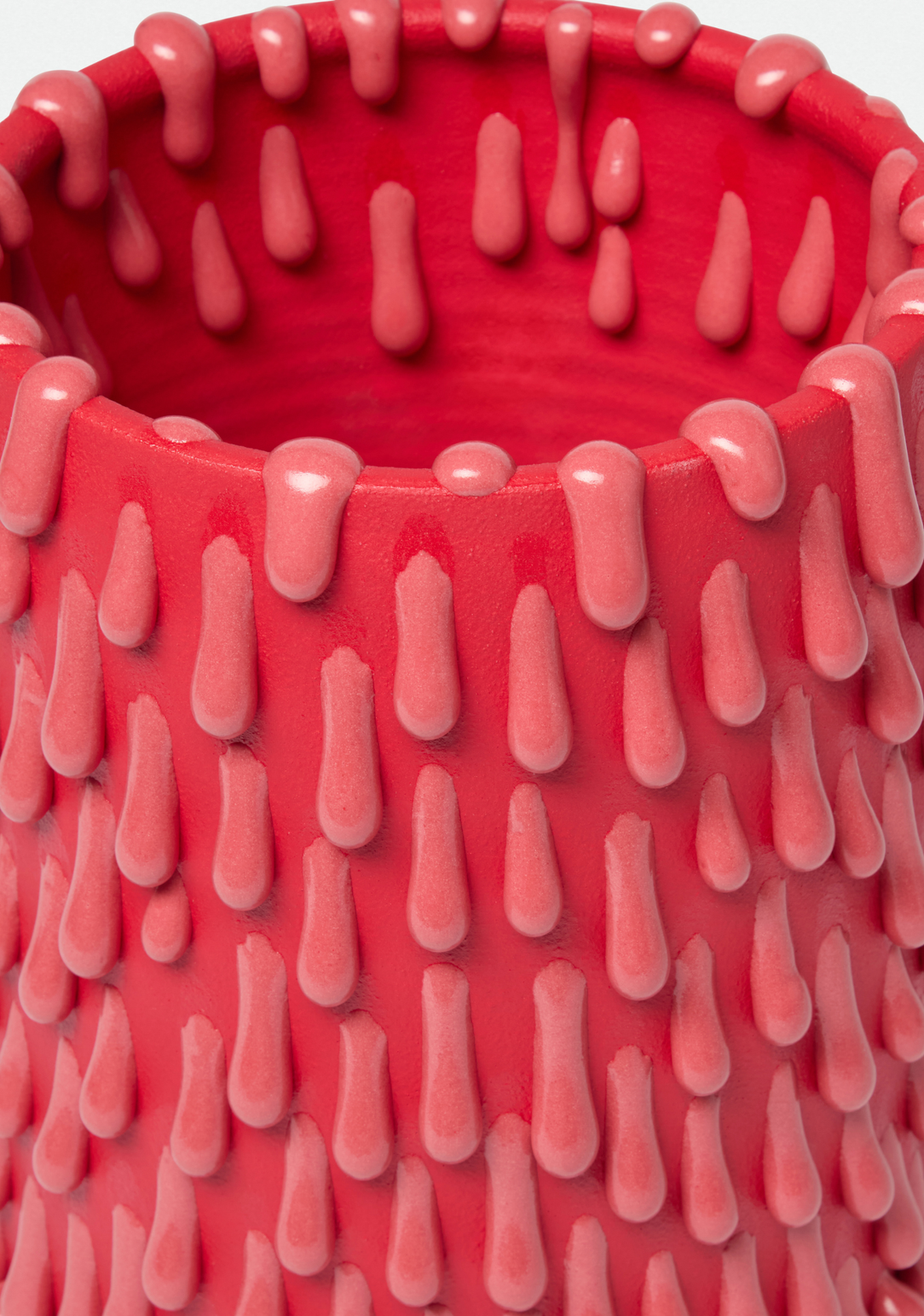 A juicy sunset of yellow and orange, drizzled with glossy lavender gloops. Tall, bold, and bursting with personality, the perfect home for flowers or a splash of quirky color.