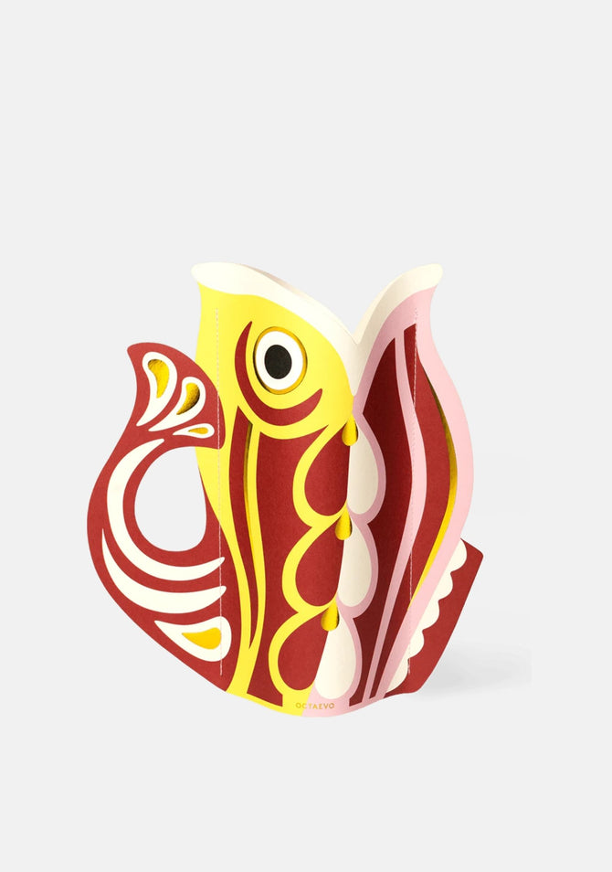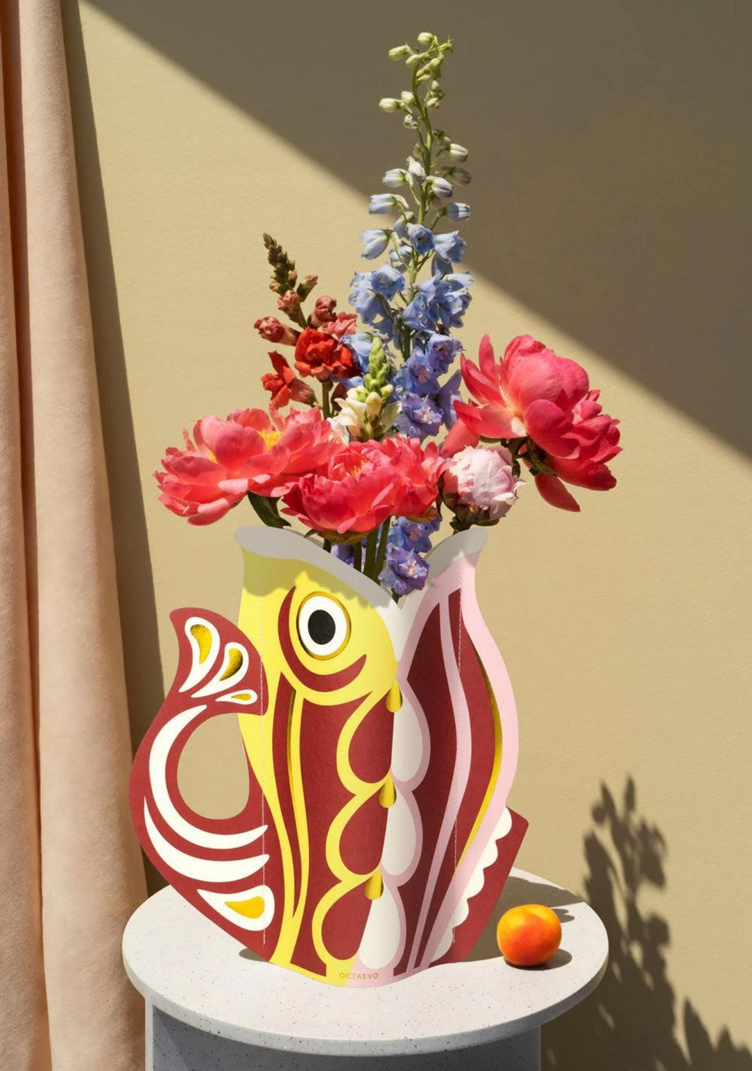Dive into the Mediterranean’s vibrant underwater world with this handcrafted flower vase, featuring a vibrant fish and made from special waterproof paper. Use it as an eye-catching centerpiece to adorn your desk or dining table, or as a thoughtful and original gift. Let your imagination bloom.