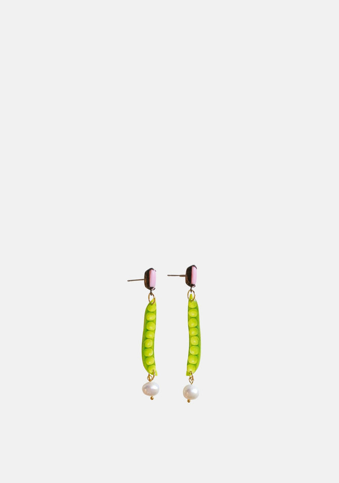 Featuring bright green pea pods paired with dangling pearls, they’re a cheeky twist on classic elegance. Lightweight and full of character, they’re perfect for those who don’t take themselves too seriously but still know how to make a statement.