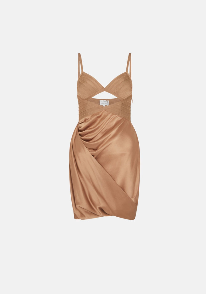 Dress like the stars in this cut-out mini dress from Hervé Legér in collaboration with celebrity stylist Law Roach. This sultry number fuses the brand's iconic body-sculpting bandage with sophisticated silk draping. It is complete with a bustier neckline, revealing cut-out details and a concealed side zip fastening.