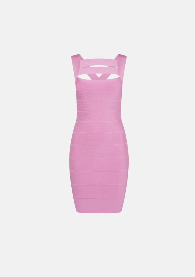 Instantly recognisable thanks to its sculpting bandage silhouette, the Iconic Strappy Mini Dress pays homage to '90s simplicity. This timeless bandage style features a cutout square neckline in the front and crisscross straps in the back.