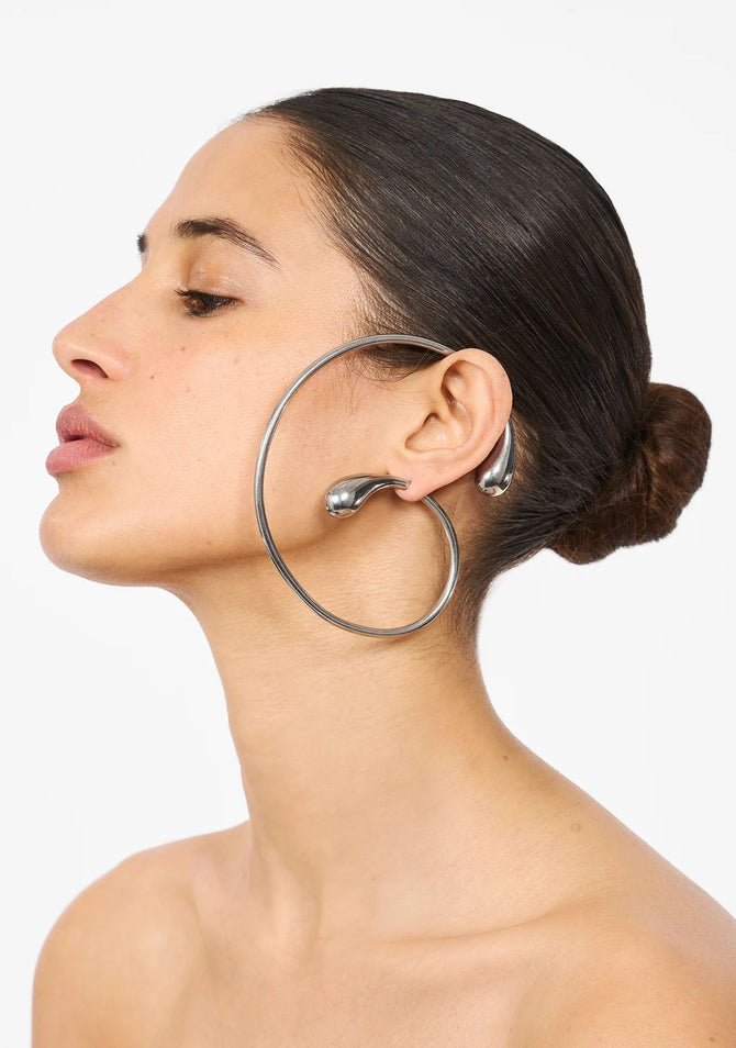 A full-circle moment. These oversized loops wrap around the ear like futuristic halos, giving instant main-character energy. Lightweight look, heavyweight attitude.