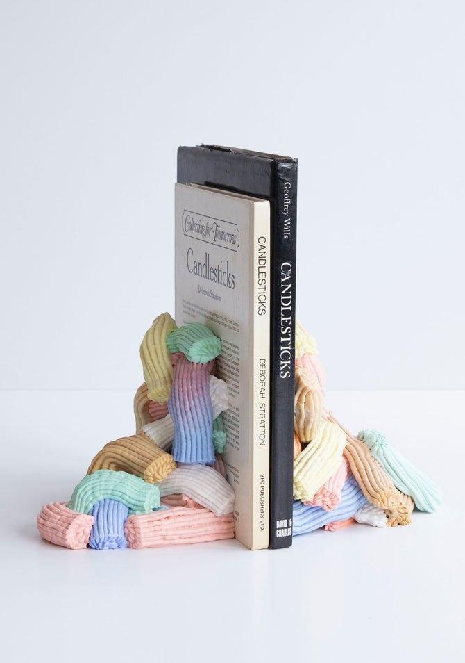 Functional meets fantastical with the Plastic Baroque Bookends. Handmade from recycled plastic, these pastel-hued forms bring a candy-like baroque aesthetic to your shelf. Each set is one-of-a-kind, making your book collection as artful as it is organised.