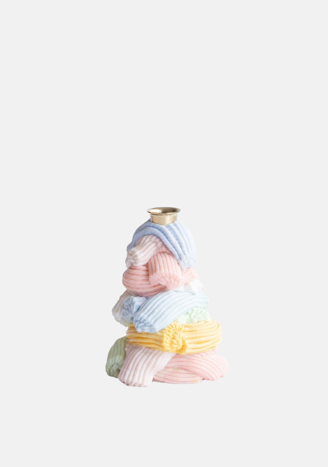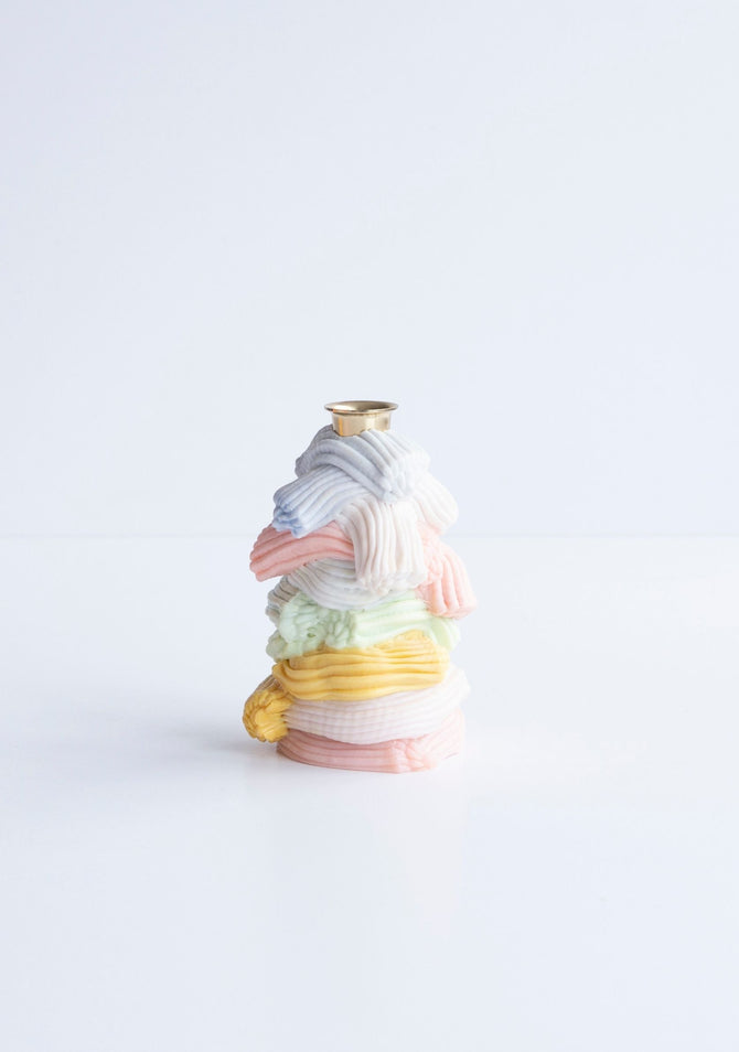 These whimsical, one-of-a-kind candlesticks are handcrafted by James Shaw using recycled plastic in a playful, ribbed baroque style. Each piece is a vibrant sculpture in itself, bringing a pop of colour and texture to your tabletop or mantle. No two are the same, making each a joyful celebration of reuse and design.