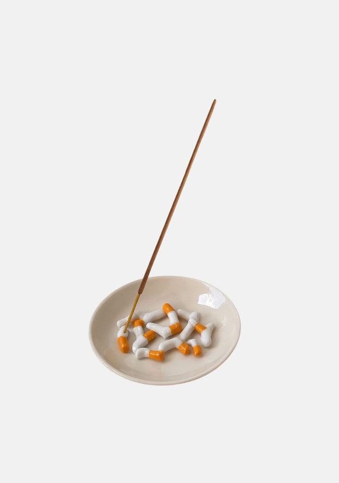 A witty twist on a classic incense burner, this ceramic dish is scattered with hand-sculpted cigarette butts that double as holders for your incense sticks. Equal parts playful and provocative, it’s a statement piece that brings a spark of humour to your space.