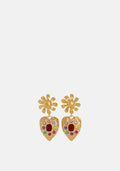 Playful and bold, these earrings mix colorful stones with Mondo Mondo’s signature textured gold. The flower top and heart drop combo give them a fun, vintage feel that’s easy to dress up or down.