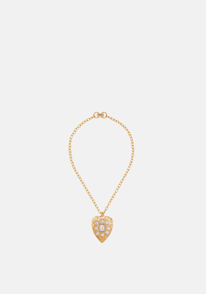 Simple and striking. A textured gold heart with bright, clear stones that add just the right amount of sparkle. It’s elegant but still has that Mondo Mondo edge.