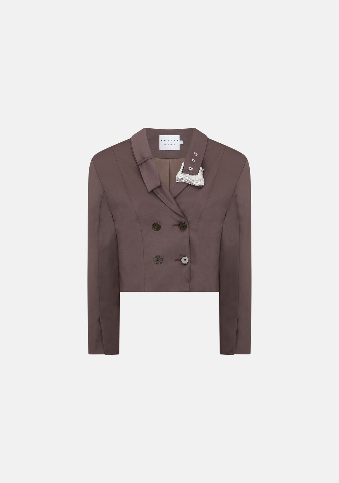 The Suzan Copped Blazer is this seasons staple piece. Crafted in London with exquisite tailoring techniques, this double breasted blazer features our dazzling diamanté buckle, statement lapel and layered shoulder pads for a boxy oversized fit. Fully Lined.