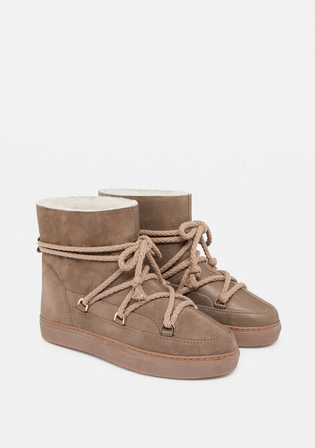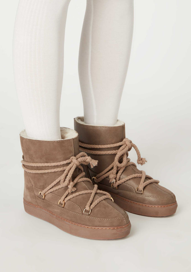 These Inuikii boots handcrafted in Zurich from curly lambskin and premium nubuck make the perfect winter boots. In brown, they lace up to the front with rope laces, have a non-slip rubber sole and are warm, practical and stylish.